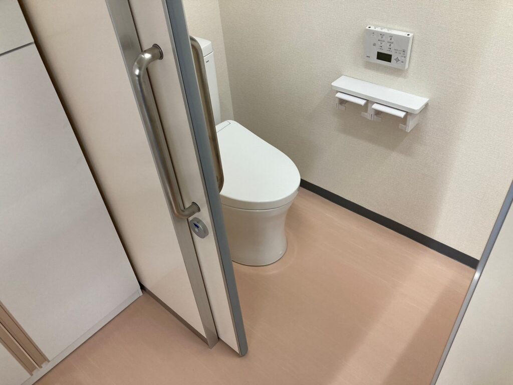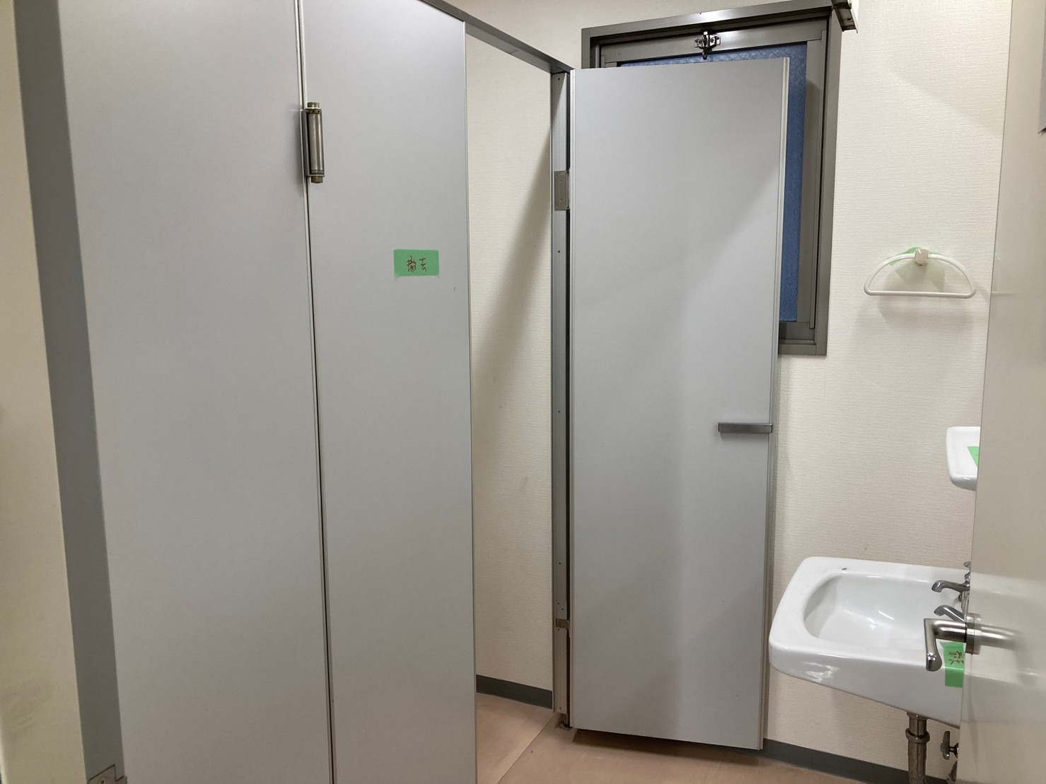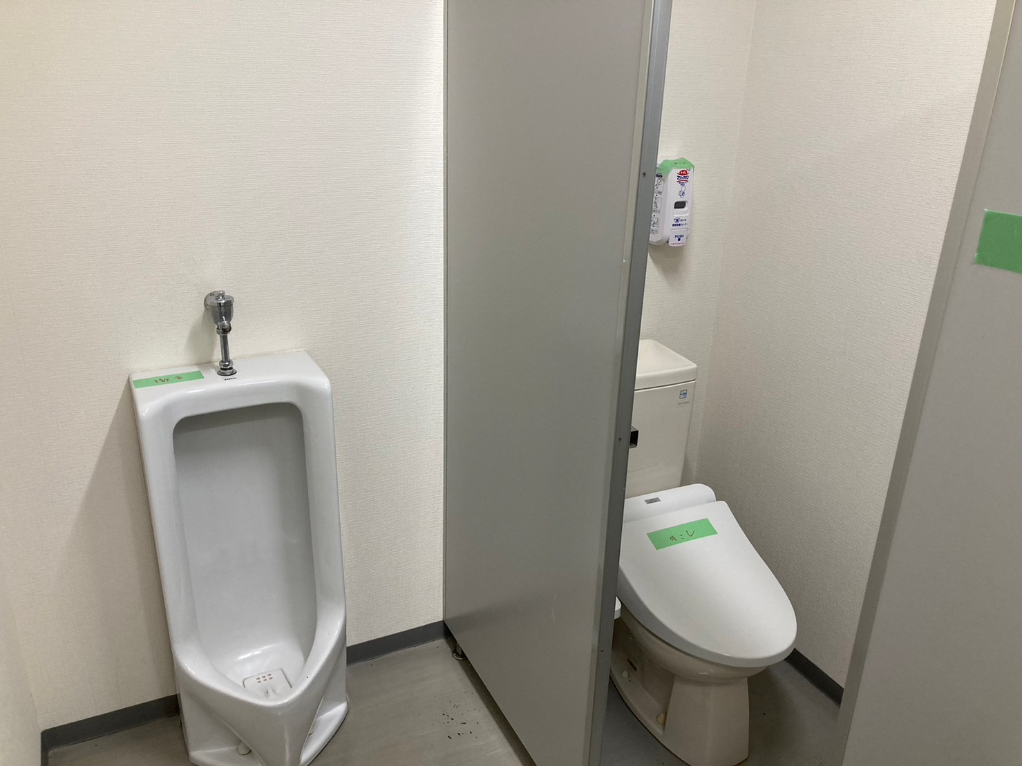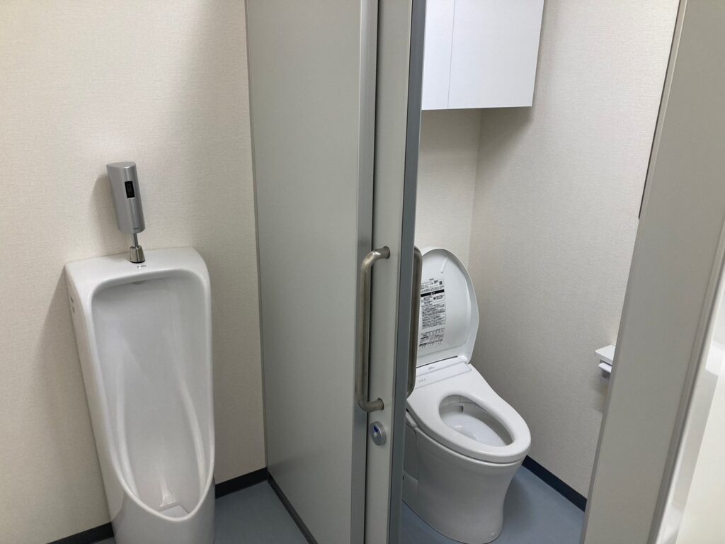 こちらの男性用トイレも、省スペース化のため開き戸からスライド式ドアに変更しました。